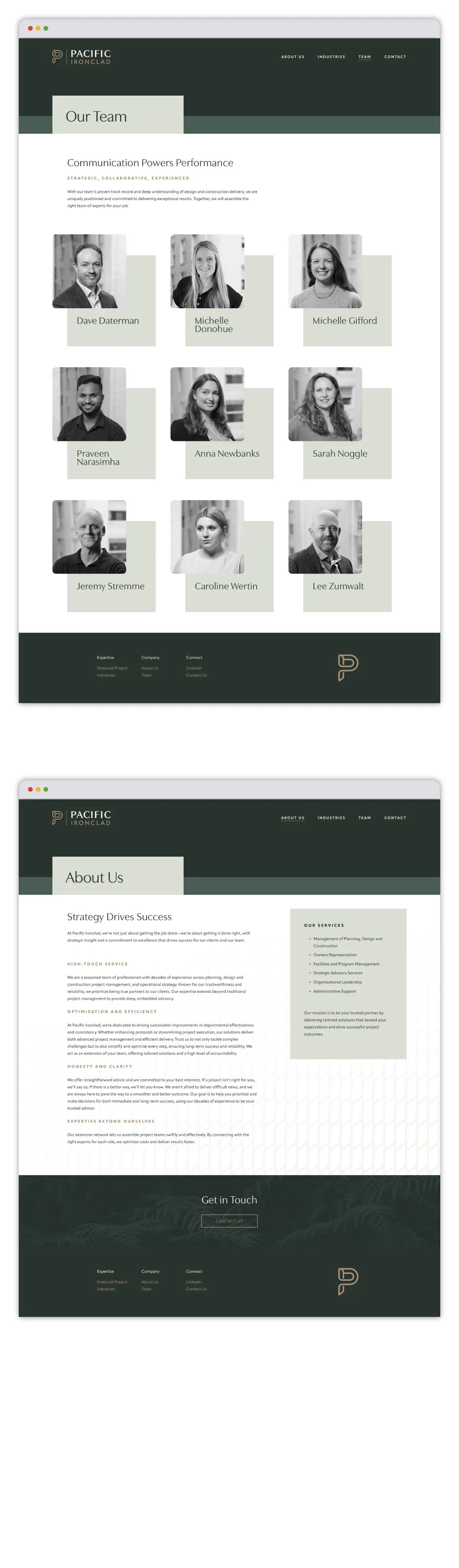 Based in Washington state, Pacific Ironclad delivers expert construction project management and consultancy services across a broad spectrum of real estate sectors. Following a change in ownership, their seasoned team approached us to reimagine their identity and set a bold direction for the future. Together, we analyzed their competitive landscape and growth opportunities, crafting a visionary brand identity and website that reflects their expertise and ambition.