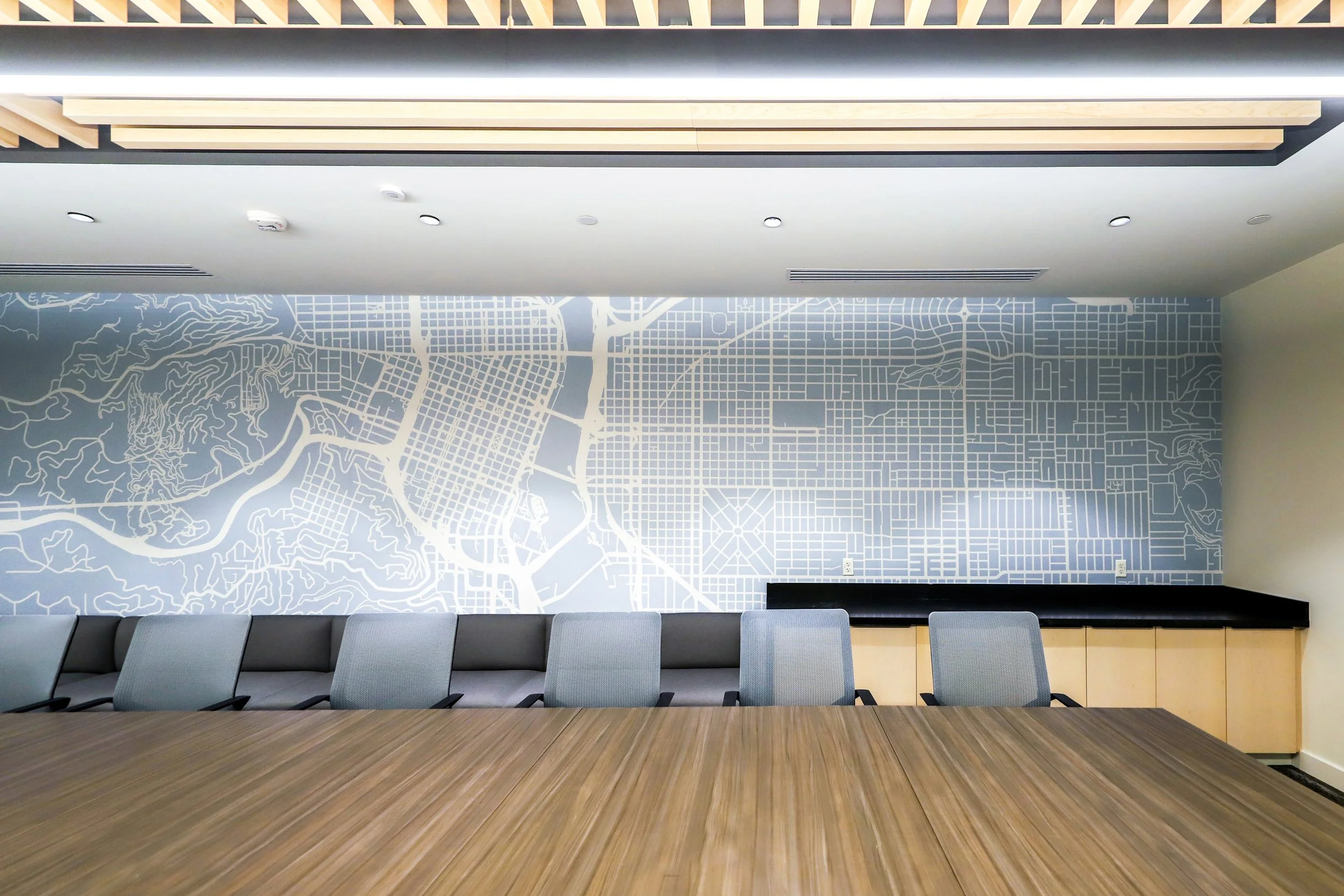 Our biggest design challenge came in the form of a literal wall. We were tasked with custom curating, designing and overseeing the installation of the double-story bookcase which is the focal point of the lobby remodel. Working from LRS's original vision for the wall, we expanded our design chops and ingenuity to procure, create and commission oversized artwork from local artists. When we could not find exactly what we were looking for, we got creative with 3-D printing.